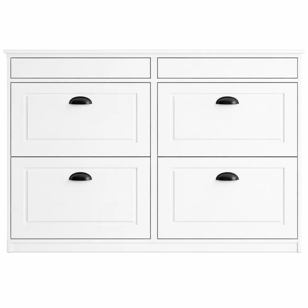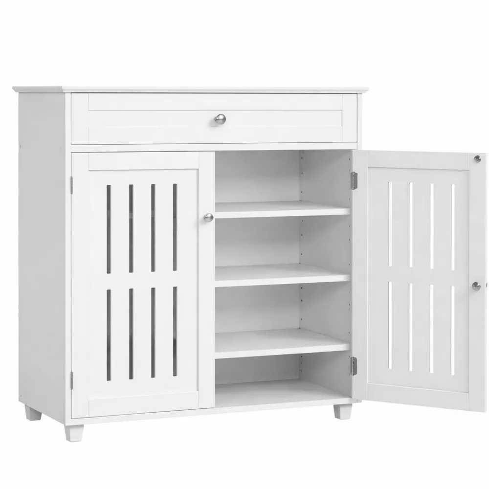 Scarpiera con Cassetto e Ripiani Regolabili a 4 Livelli, Mobiletto Ingresso Bianco in Legno