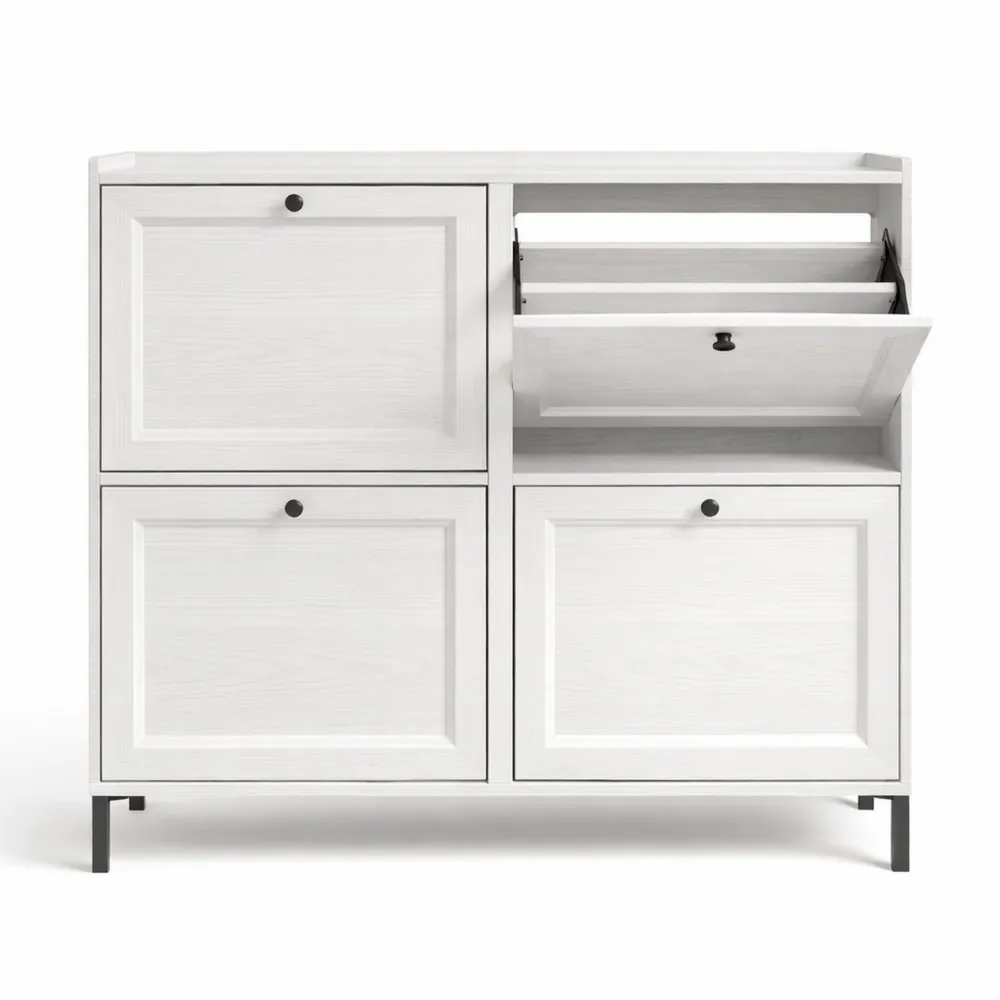 Scarpiera slim con 4 ante a ribalte, ideale per ingresso e corridoio, 99x24x91 cm, bianco