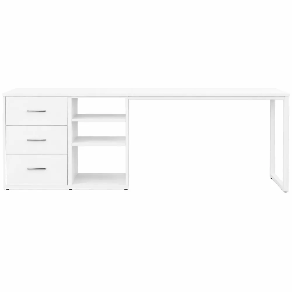 La scrivania da casa è dotata di una struttura in metallo e un piano in legno, progettata per consentire di digitare, scrivere o giocare senza oscillare. I piedini antiscivolo sotto le gambe impediscono di graffiare il pavimento e riducono il rumore durante gli spostamenti. Questa scrivania a L è dotata di cassetti in tessuto con maniglie e ripiani regolabili per riporre libri, riviste, file e altri oggetti per mantenere lo spazio organizzato. La scrivania per computer è dotata di porte USB e prese di corrente, offrendo porte di ricarica per vari dispositivi. Può essere posizionata a L o a zig-zag a seconda dell'utilizzo, adattandosi a stanze con spazio limitato. Forniamo istruzioni chiare per facilitare il montaggio.