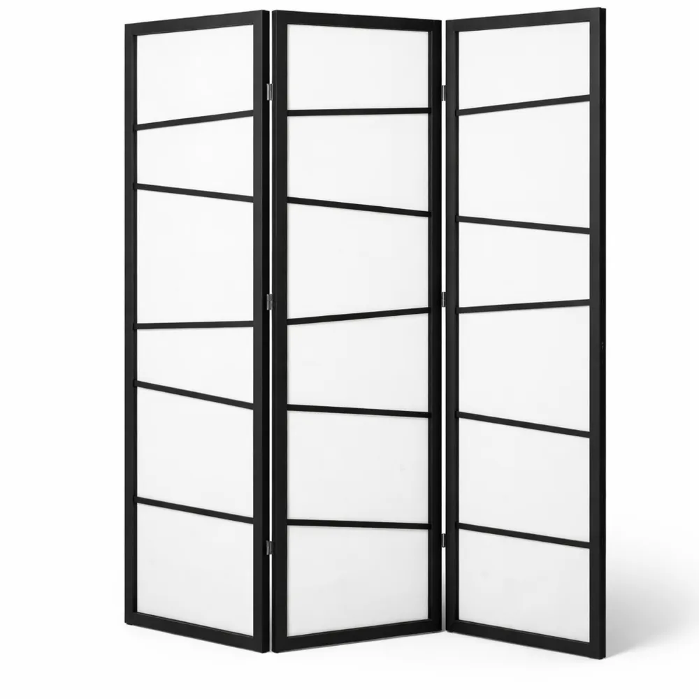 Separè a 3 pannelli pieghevole in legno per interni 120x170cm, nero e bianco